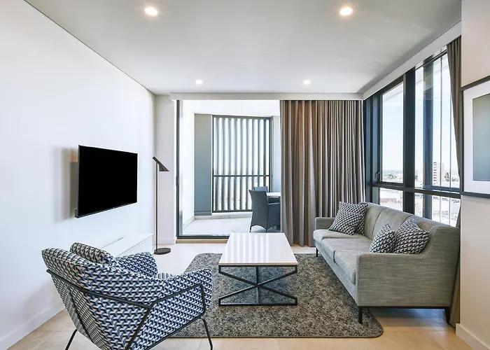 Situato a 3 km da Sacred Heart Catholic Church Cabramatta, l'hotel 5 stelle Meriton Suites Liverpool offre Wi-Fi nelle aree comuni e un parcheggio privato all'interno della struttura. L'hotel è un buon punto di partenza per esplorare Liverpool, compreso il Centro commerciale Westfield Liverpool, che si trova a soli 5 minuti a piedi.